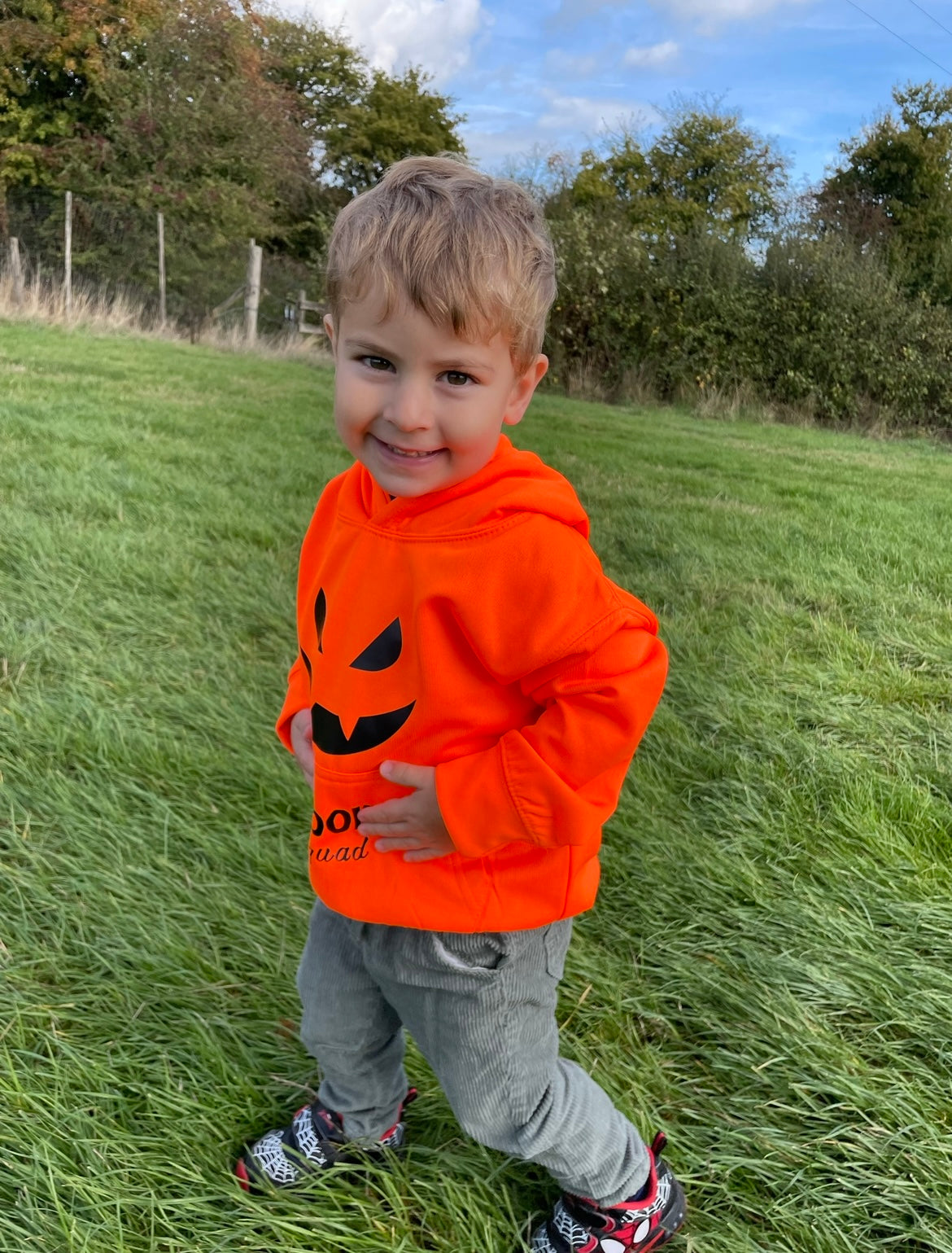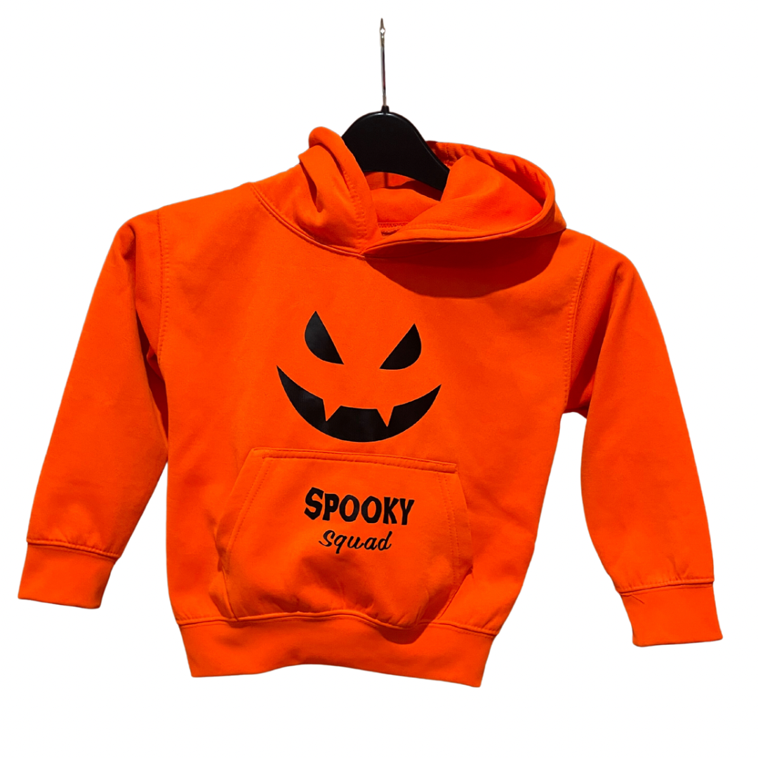 This Halloween, stand out from the crowd in this spooky squad hoodie! Show off your style in our bright orange hoodie with black pumpkin face vinyl design, sure to get you noticed! Let the world know you take your ready to scare up some fun!