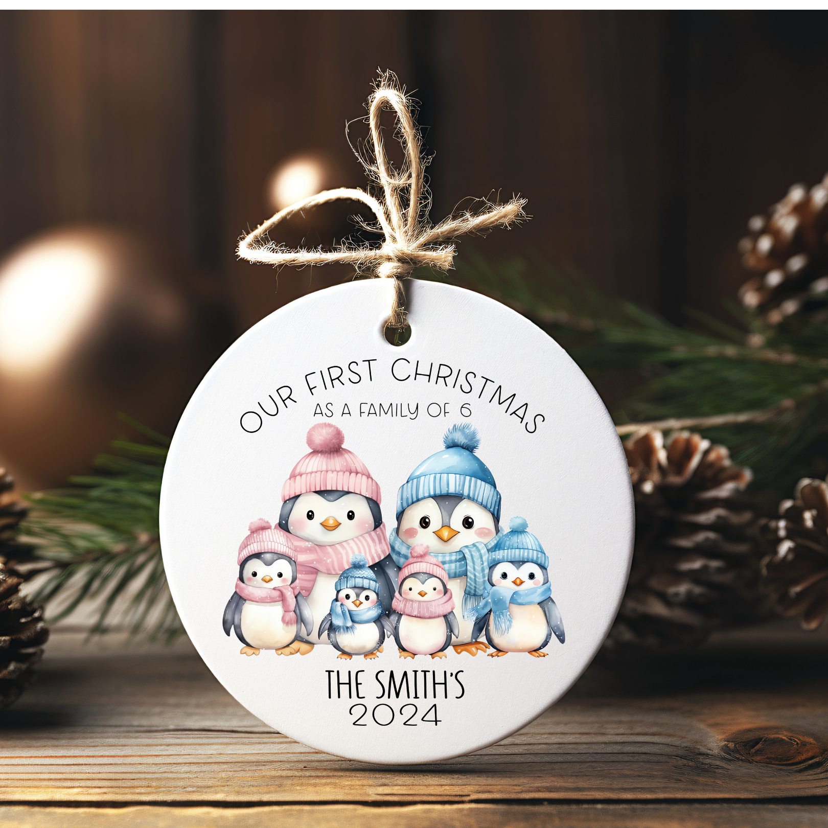 Customisable with your family name, year, and the number of family members, it makes a heartfelt addition to your Christmas tree or a thoughtful gift for loved ones.